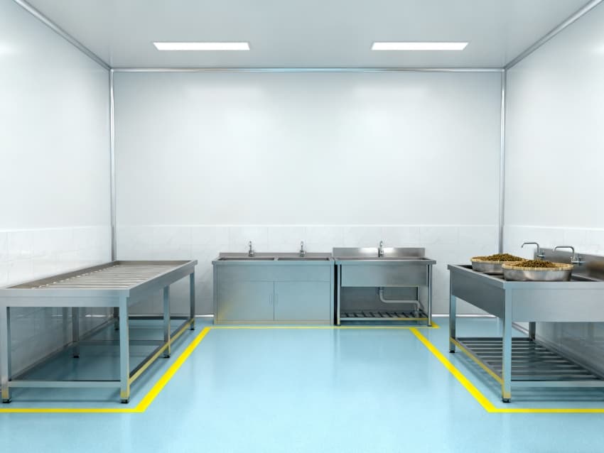 車間整體遵循醫藥級潔凈設計標準,地面采用淺藍色抗菌防滑環氧地坪,通過無縫一體化施工工藝,徹底消除藥渣殘留隱患與衛生死角,其卓越的耐腐蝕性與易清潔特性,能夠從容應對中藥清洗、切制等高頻清潔作業;四周白色防塵抗菌墻面經過特殊工藝處理,具備優異的光線漫反射性能,搭配頂部科學布局的柔和照明系統,既保證操作人員能夠清晰觀察藥材炮制過程中的性狀變化,又為生產環境構筑起一道潔凈無菌的安全屏障。